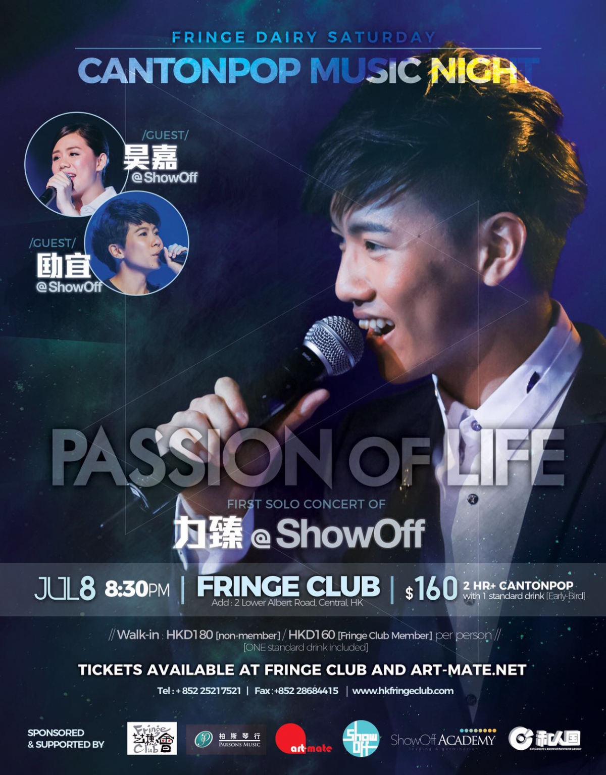 A current member of ShowOff, he won the “Voice Talent Challenge Vol. 4” in 2016. He is currently a Year Three student of Mathematics and Mathematics Education at the Chinese University of Hong Kong. His motto is “Life affects life.” His goal is to to share his own experience with others through music and education, and to bring positive energy to different communities in society.