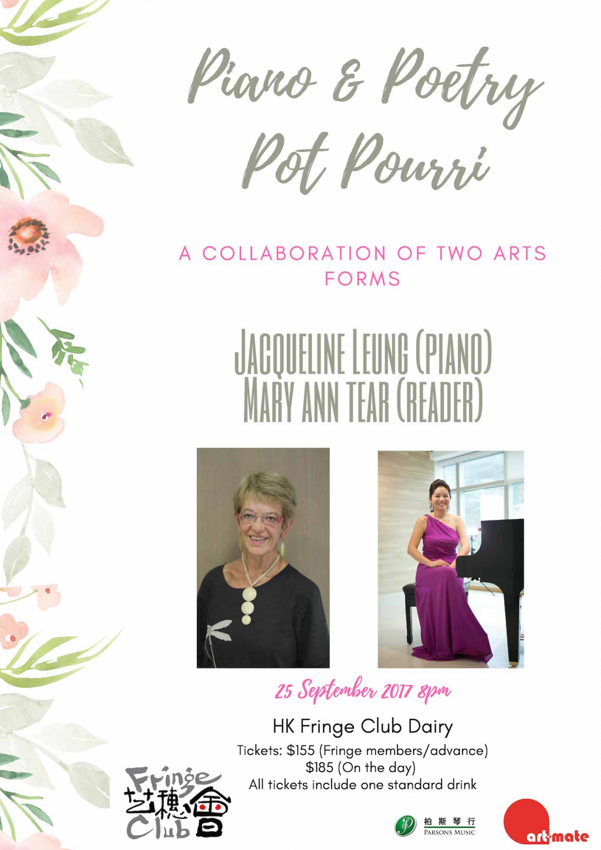 In this collaboration between two artists and two artforms, Jacqueline Leung and Mary Ann Tear explore the themes of romance, ennui, uncertainty, fear, anger, sorrow, regret and remembrance by interspersing piano music with poetry readings. The evening starts with extracts from Shakespeare’s Romeo and Juliet, followed by Prokofiev’s suite of the same name, followed by intimate letters and music by Robert and Clara Schumann and much more.