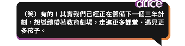 但在走近愛麗絲劇場實驗室的教育劇場項目:親身走訪他們的教育劇場活動,細閱他們多年的研究成果後,我們看到的,遠遠不止於此——