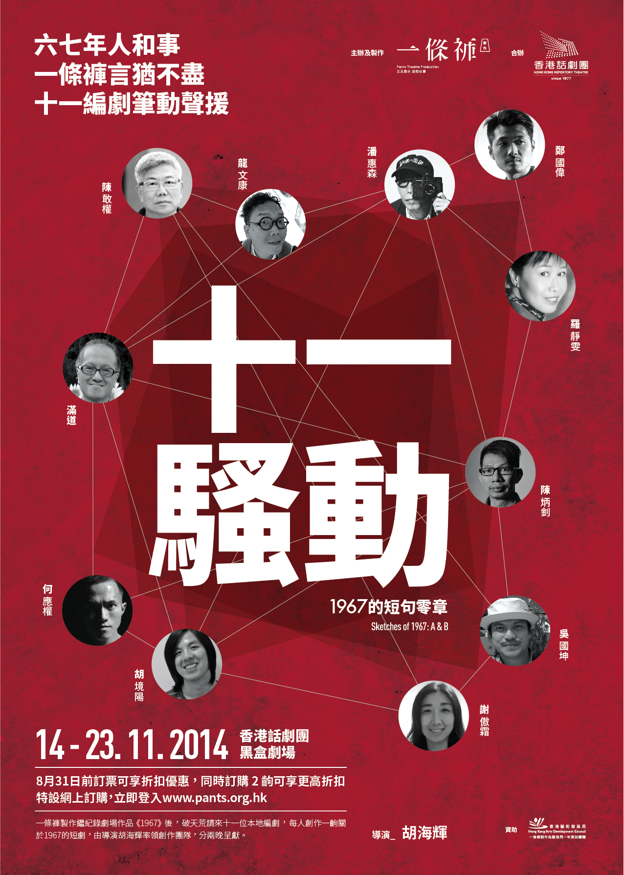 一條褲製作繼紀錄劇場作品《1967》後,破天荒請來十一位本地編劇,每人創作一齣關於1967的短劇,由導演胡海輝率領創作團隊,分兩晚呈獻。