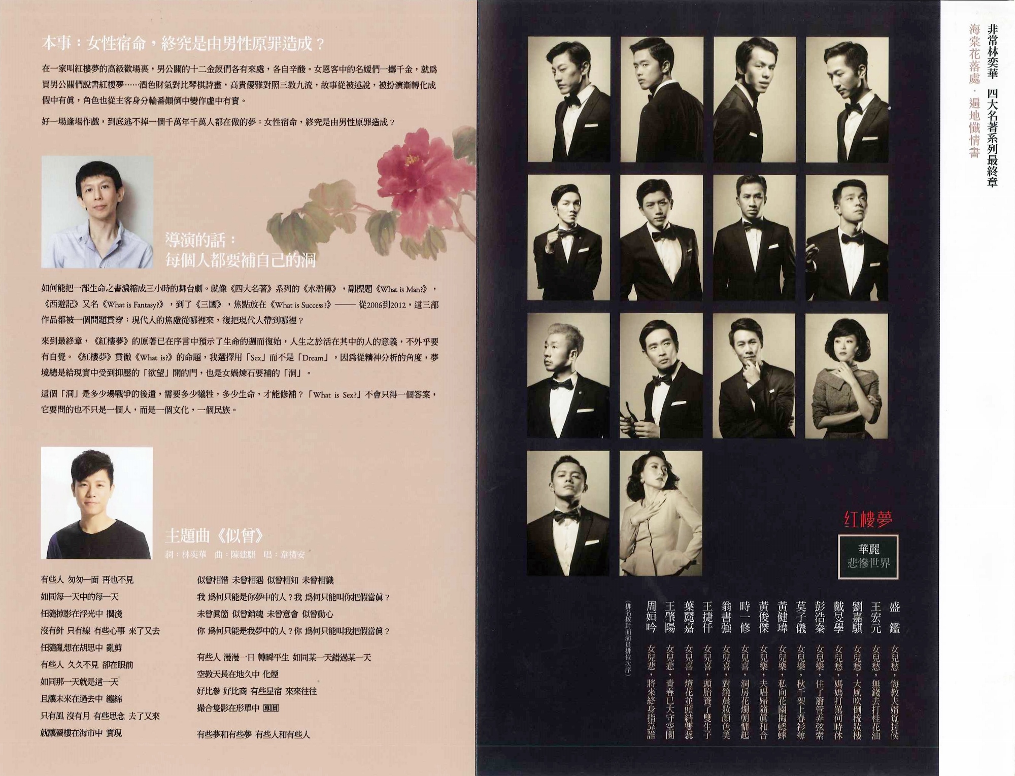 在一家叫紅樓夢的高級歡場裏,男公關的十二金釵們各有來處,各自辛酸。女恩客中的名媛們一擲千金,就為買男公關們說書紅樓夢‧‧‧‧‧‧酒色財氣對比琴棋詩畫,高貴優雅對照三教九流,故事從被述說,被扮演漸轉化成假中有真,角色也從主客身份輪番顛倒中變作虛中有實。