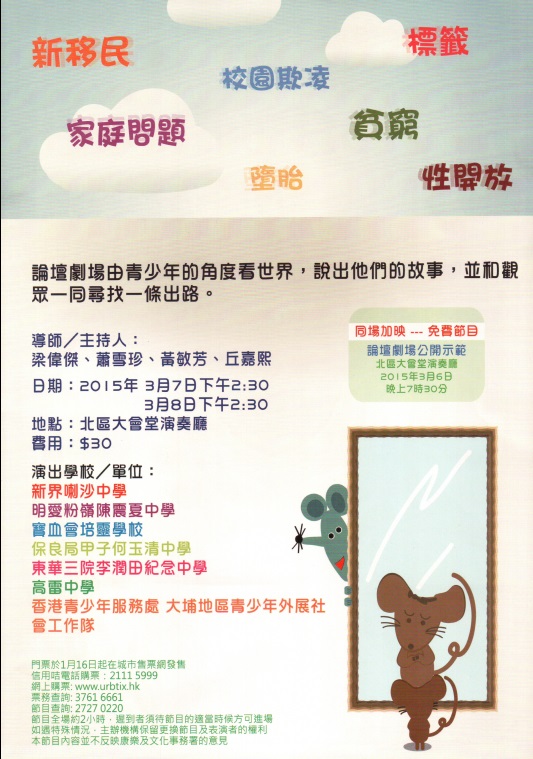 論壇劇場由青少年的角度看世界,說出他們的故事,並和觀眾一同尋找一條出路。