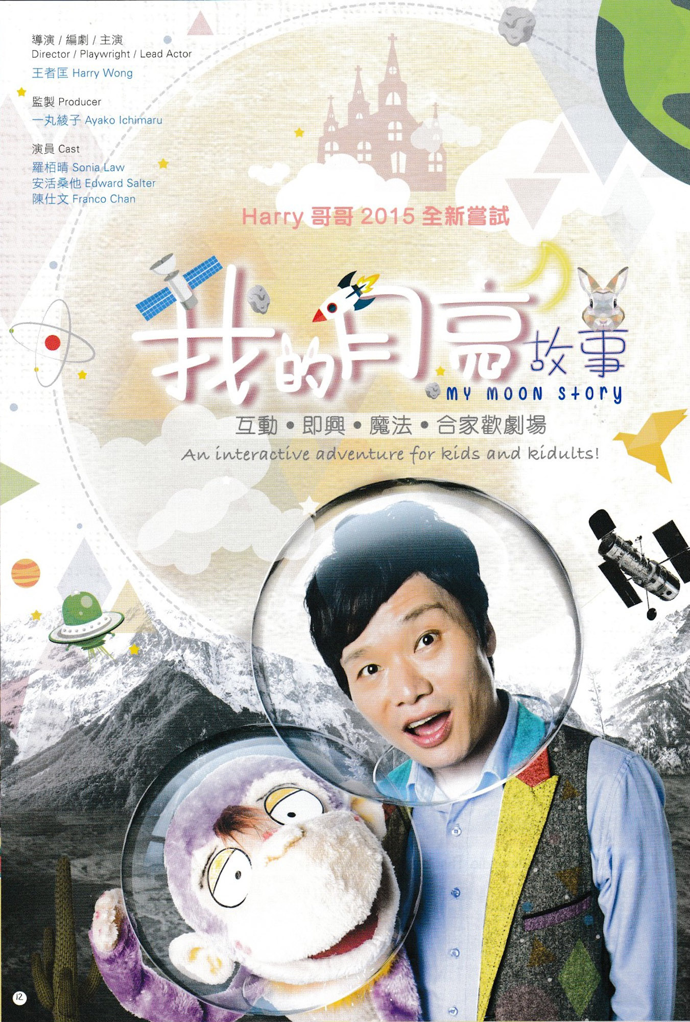 我的月亮故事Harry哥哥Harry哥哥2015全新嘗試互動•即興•魔法•合家歡劇場如果你可以帶一樣東西上月球,你會帶甚麼?Harry和一班好友,還有馬騮芝麻一齊去野外露營。他們看見天上的大月亮,忽發奇想玩故事接龍遊戲,於是一次集恐怖、浪漫、傳統與科幻於一身的月球之旅由此展開!魔術丶布偶丶唱歌丶跳舞和你一起飛上月球由觀眾話事,約定你一齊參與每場演出都是一個不一樣的故事為你帶來不一樣的驚喜