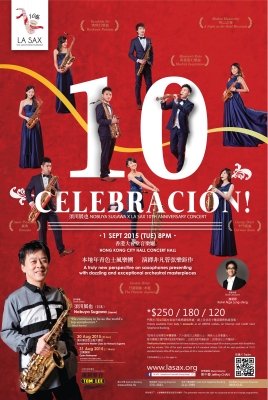 La Sax, founded in 2005 by local saxophone talents, is regarded as one of the earliest saxophone ensembles in Hong Kong. With the goal of encouraging public interest in the art of classical music, La Sax dedicates to providing high quality concerts to the audience. Over the years, La Sax has been performing extensively in Hong Kong and Asian countries. Remarkable concerts includes “SaxoCarnival” at the Hong Kong City Hall, “Shall We Sax?” at Sha Tin Town Hall, and various public performances at every part of Hong Kong. In August 2014, La Sax was awarded the Jury Special Prize at the Singapore Woodwind Festival. In 2015, La Sax hold its 10th Anniversary Celebration Concert at the Hong Kong City Hall, performing with world renowned saxophonist Mr Nobuya Sugawa. Media coverage of the concert included TVB, RTHK, Sing Tao Daily, Ming Pao, Hong Kong Economics Times and more. Since then, La Sax has continued to grow with a rapidly increasing presence in various concerts and events, and has expanded to an ensemble that consist of more than ten saxophone enthusiasts. Members of La Sax combines professional musicians, music graduates and music students from local institutions, sharing the same passion on saxophone playing.