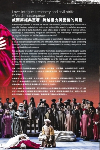 這齣橫跨上下三代愛情、親情、友情的家國大悲劇,是歌劇巨人威爾第繼《弄臣》、《遊吟詩人》及《茶花女》後創作的傑作,與這三大名劇齊名。作曲家因經歷了重要的創作轉變期,而完成了這齣無論在故事情節及音樂結構方面均非常宏大之作品。