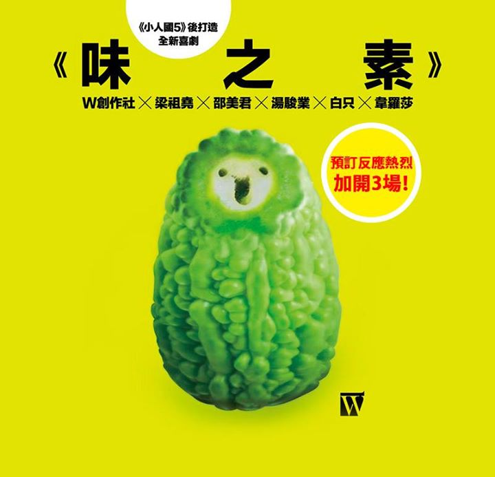 編導黃智龍、演員梁祖堯、邵美君、湯駿業、韋羅莎、白只,將在《味之素》這齣關於食物的喜劇,替你發掘自己的個性,像《小人國5》的Tomato Blue,給你驚喜連場,於1月8日起在葵青劇院演藝廳,一起找出人生的「未知數」!
