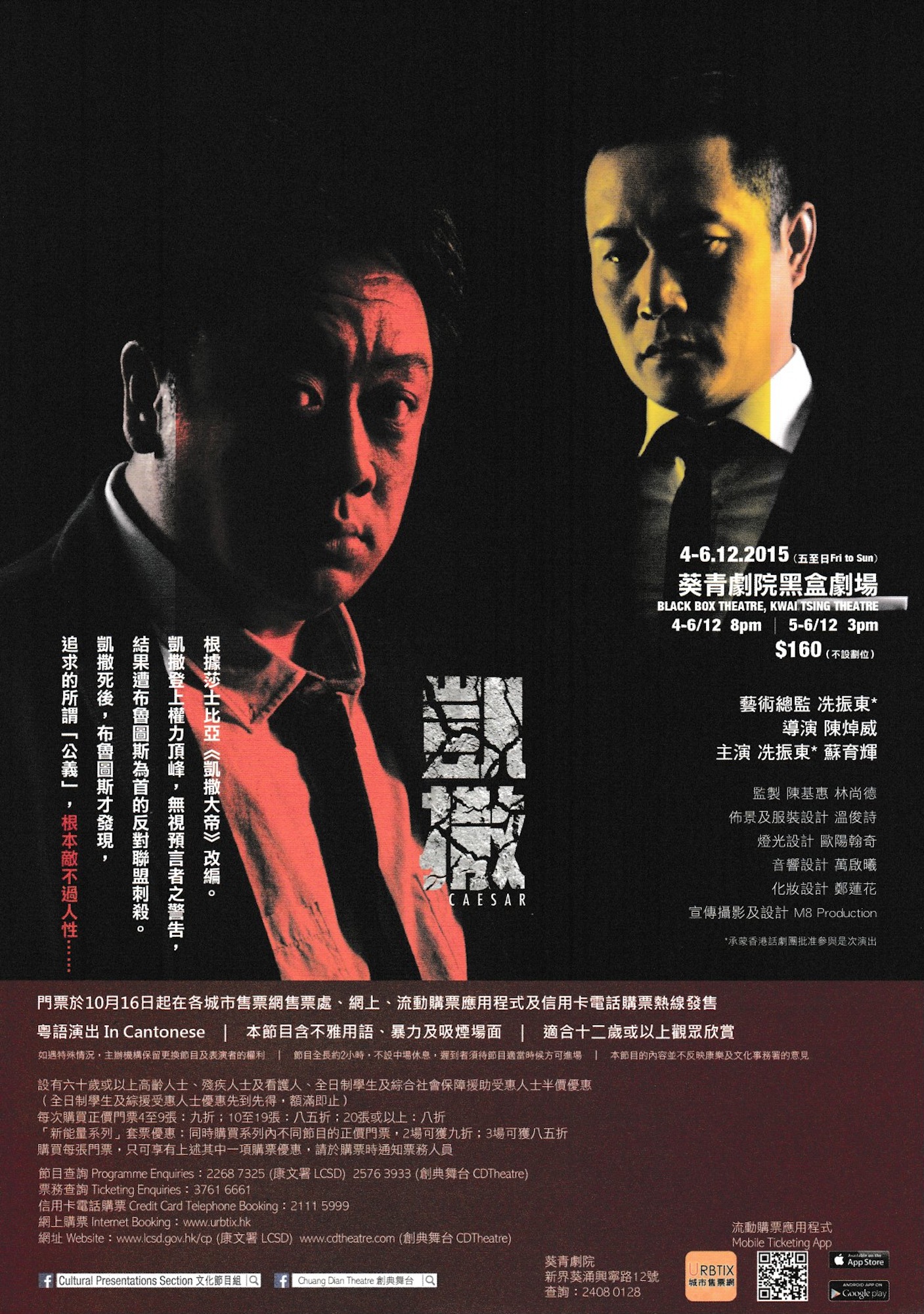 創典舞台 x 冼振東 x 陳焯威 x 蘇育輝公義過後 人性依舊由曾獲得香港舞台劇獎最佳導演提名的冼振東,以及獲得香港小劇場獎最佳導演提名的陳焯威攜手打造,根據莎士比亞《凱撒大帝》改編。故事講述社團組織龍頭大哥凱撒自封為辦事人,無視算命先生的預告,隻身闖入字頭辦事處,結果被以布魯圖斯為首的反對聯盟暗殺。凱撒死後,布魯圖斯才真正發現,所謂的反對聯盟,並不如他想像中那樣……