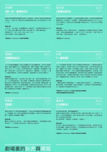 今年,繼續由潘惠森先生當召集人,率領二十二位編劇走出來,一人一劇,與你分享二十二個故事。他們來自劇場的四面八方:有經驗豐富的專業演員、創意十足的舞台導演、炙手可熱的當紅編劇,蓄勢待發的臥虎,以及忽然驚艷的藏龍。