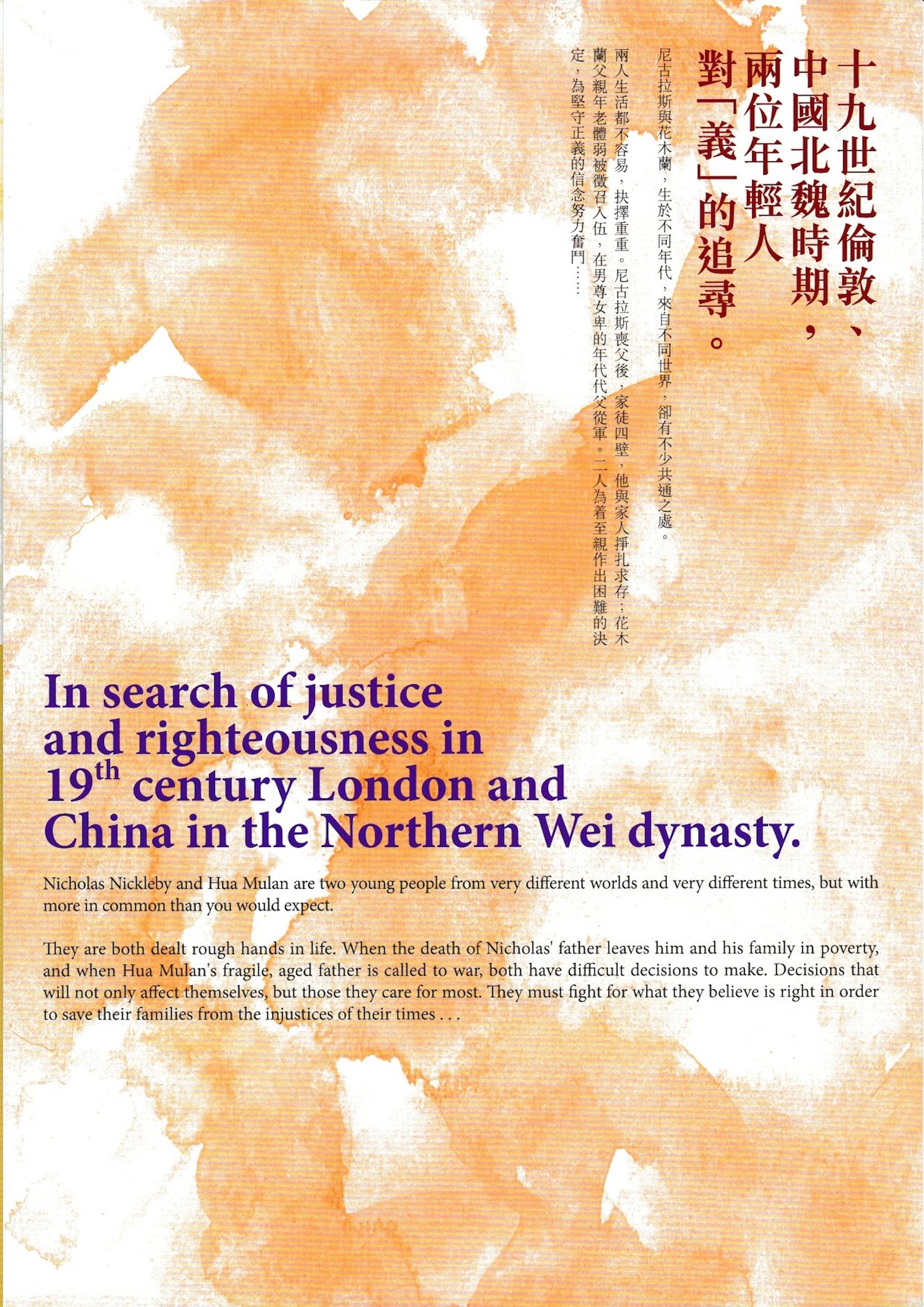 尼古拉斯的故事背景處於維多利亞年代社會,當時生活艱難,在維持生計與緊守道德標準之間,百姓經常面對矛盾與掙扎。正義與邪惡、權力與貧窮、對家庭的責任等,都是本劇探討的主題。狄更斯這個經典著作充滿對人性尖銳的嘲諷,亦不失精彩的喜劇元素,當中的人生課題,至今仍值得我們深思。