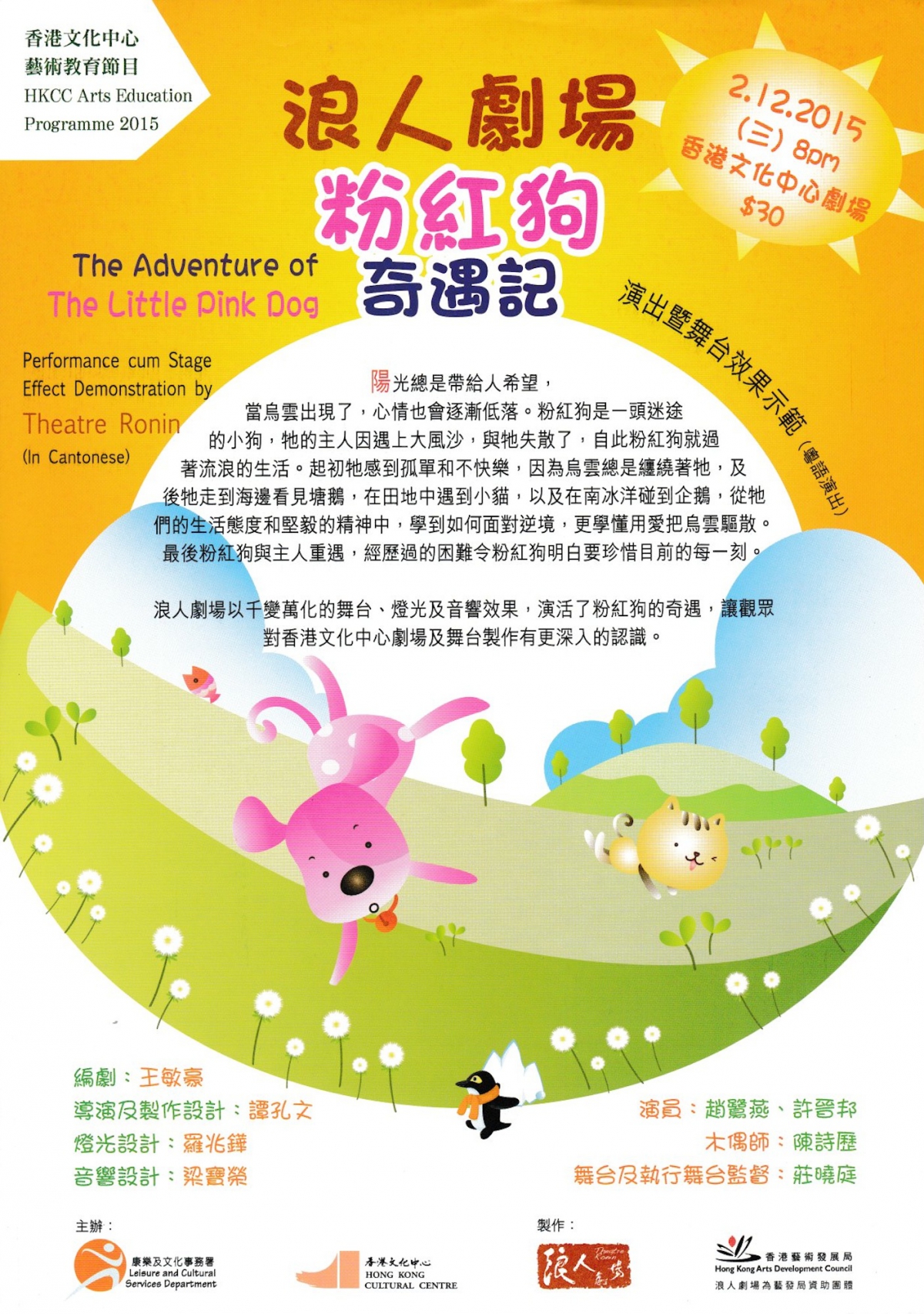 浪人劇場以千變萬化的舞台、燈光及音響效果,演活了粉紅狗的奇遇,讓觀眾對香港文化中心劇場及舞台製作有更深入的認識。