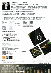 演出改編自卡佛三篇小說,以簡潔的敍事手法,展現日常裡不尋常的際遇──