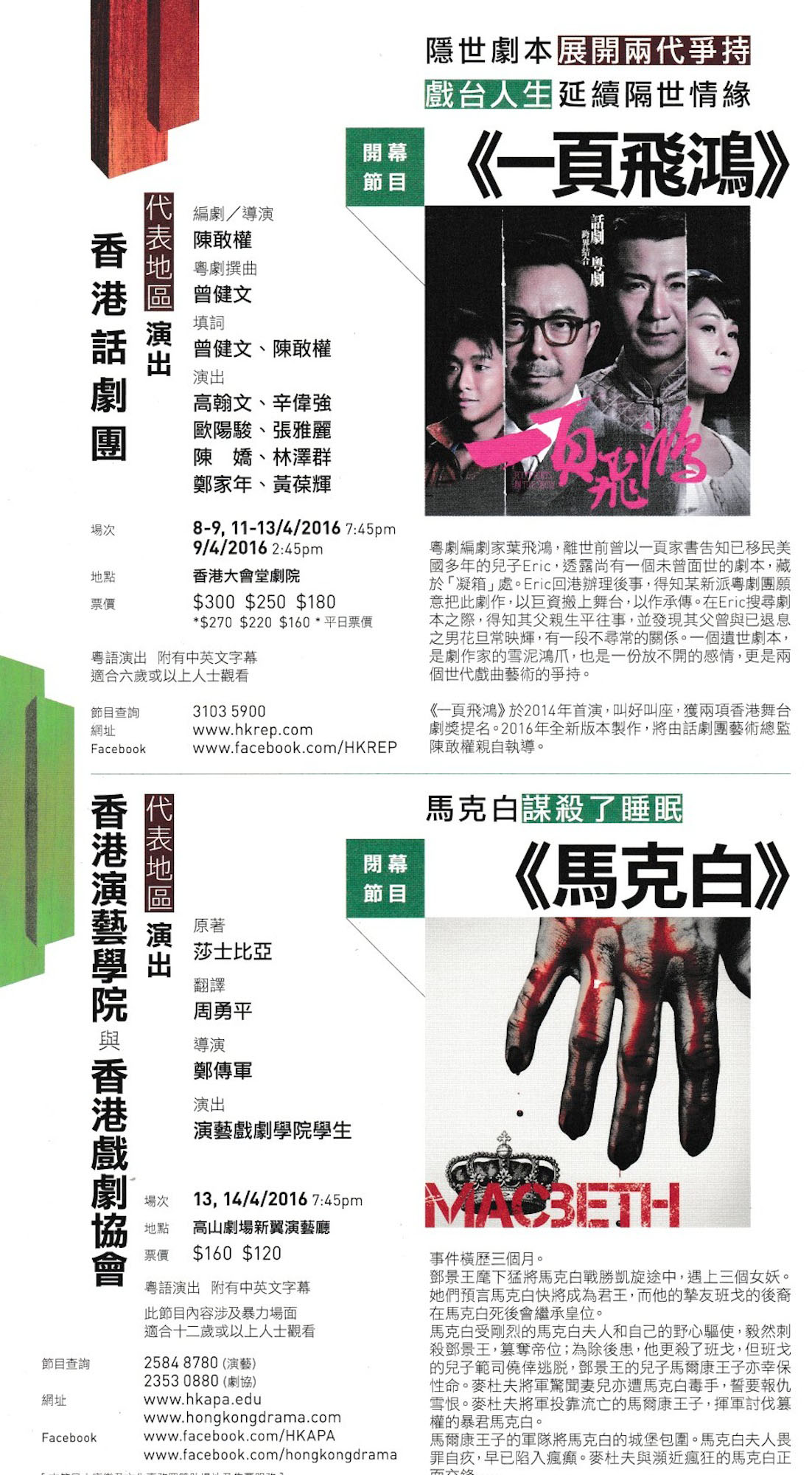 馬克白受剛烈的馬克白夫人和自己的野心驅使,毅然刺殺鄧景王,篡奪帝位;為除後患,他更殺了班戈,但班戈的兒子範司僥倖逃脫,鄧景王的兒子馬爾康王子亦幸保性命。麥杜夫將軍驚聞妻兒亦遭馬克白毒手,誓要報仇雪恨。麥杜夫將軍投靠流亡的馬爾康王子,揮軍討伐篡權的暴君馬克白。