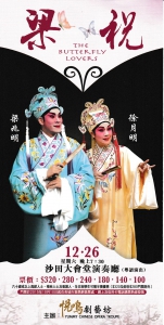 桃源世外,萬花如錦,一對苦鴛鴦,雙飛化彩蝶,共舞雲霄外。