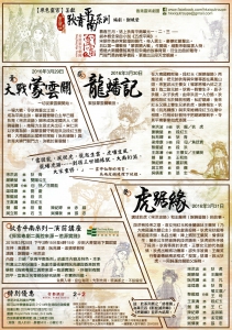 暮春三月,送上狄青平南單元一、二、三 ─ 劇本概念來自小說 《五虎平南》。宋朝作為非常動蕩的朝代,奇人異士、豪傑紅顏輩出。且以第一場戰役「蒙雲關大戰」作開端,細數宋朝風雲人物,透過大南國儂智高侵犯朱境的故事背景,衍生出曲折離奇、鬥智鬥勇的戰爭橋段,更道出三段天定姻緣。