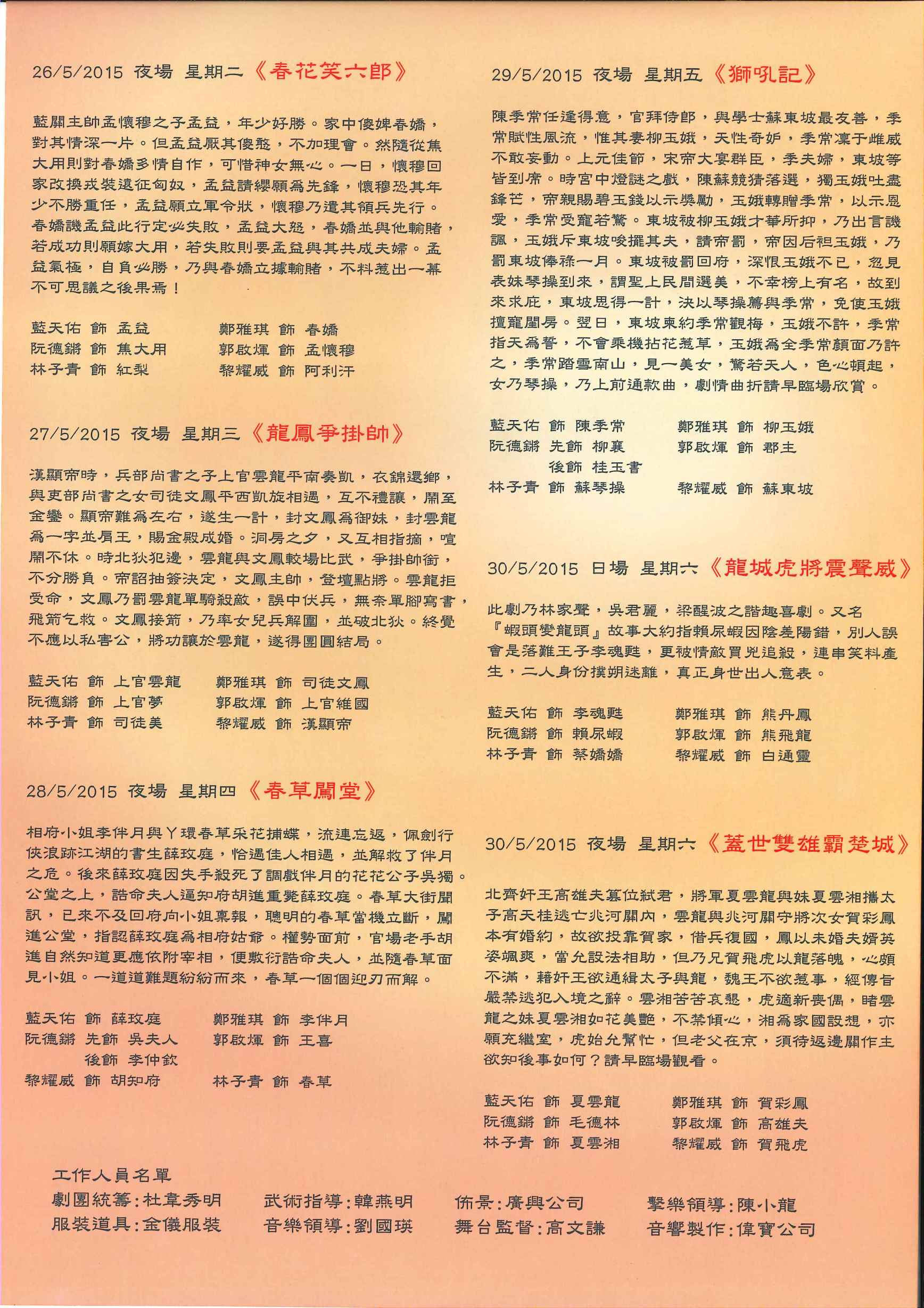 *原第三花旦梁慧珠小姐因事辭演,由林煒婷小姐頂替。