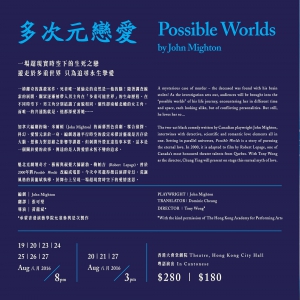 魁北克劇壇奇才、藝術與視覺大師羅勃・勒帕吉 (Robert Lepage),曾於2000年將Possible Worlds改編成電影。今次中英邀得擅長演繹奇幻、荒誕風格的黃龍斌執導,於舞台上呈現一場超現實時空下的愛情迷思。