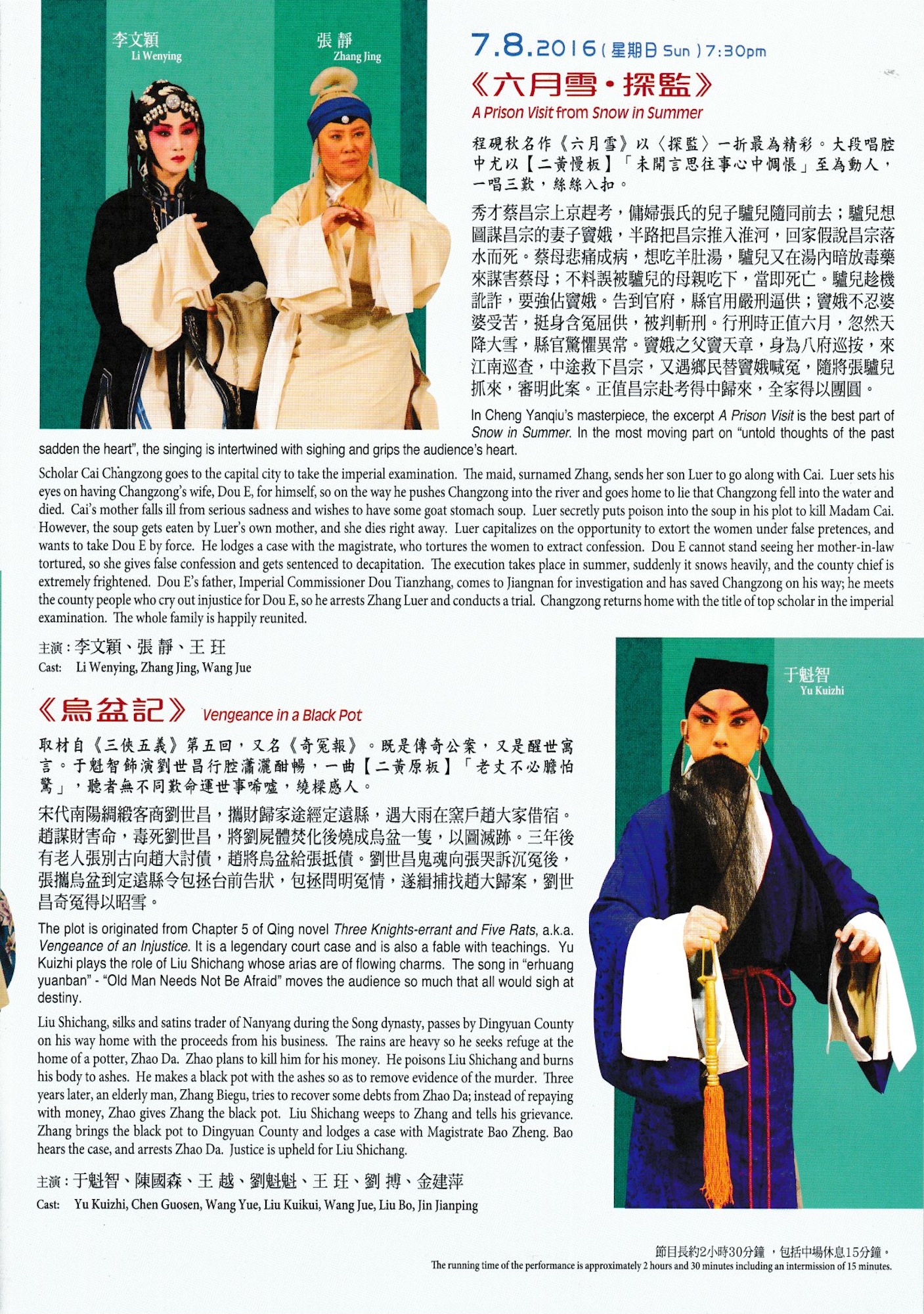 劇目:《六月雪‧探監》《烏盆記》