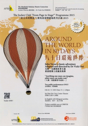 尤勒‧凡爾納原著小說黃清霞博士改編及執導 故事發生於1872年倫敦,主角霍格是一位寡言而勇敢的英國紳士。他接受了一場接近天方夜譚的打賭,要在八十日內環遊世界,為此他聘請了一位法國男僕麥都德一同出發。途中霍格更被費時探長盯上,懷疑他是銀行劫匪,令旅程格外一波三折。儘管如此,這一趟奇妙之旅最終還是讓霍格看到世界之大,更加找回他的真心。 演出特備活動(只限持票者參加)請提早於下午一時到場參加- 自助照相亭- 手摺紙大象及更多精彩活動!