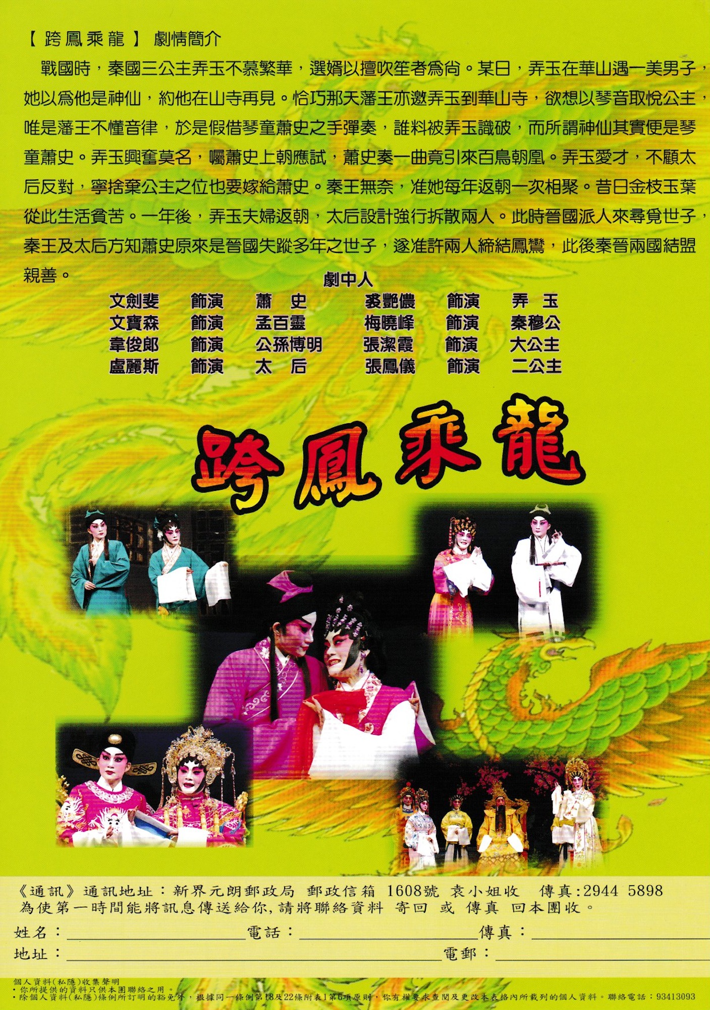 戰國時,秦國三公主弄玉不慕繁華,選婿以擅吹笙者為尚。某日,弄玉在華山遇一美男子,她以為他是神仙,約他在山寺再見。恰巧那天藩王亦邀弄玉到華山寺,欲想以琴音取悅公主,唯是藩王不懂音律,於是假借琴童蕭史之手彈奏,誰料被弄玉識破,而所謂神仙其實便是琴童蕭史。弄玉興奮莫名,囑蕭史上朝應試,蕭史奏一曲竟引來百鳥朝凰。弄玉愛才,不顧太后反對,寧捨棄公主之位也要嫁給蕭史。秦王無奈,准她每年返朝一次相聚。昔日金枝玉葉從此生活貧苦。一年後,弄玉夫婦返朝,太后設計強行拆散兩人。此時晉國派人來尋覓世子,秦王及太后方知蕭史原來是晉國失蹤多年之世子,遂准許兩人締結鳳鸞,此後秦晉兩國結盟親善。