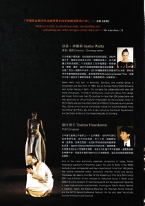 月亮映照海面,海風掀動浪花,松針層疊交錯,晦暗月色中流連著被塵緣所困的幽靈姊妹 ─ 松風與村雨,她們因著僧人的探詢,現身訴說自身的故事⋯⋯日本能劇的經典劇目《松風》,落在以跨界合作馳名國際的德國編舞家莎莎 ‧ 華爾斯手中,既保存東方傳統劇場的含蓄簡約,又具備西方歌劇音樂的深厚宏大,加上當代舞蹈流麗澎湃的表達力,糅合出一種嶄新舞台美學,獲評為「令人難忘的總體藝術作品」。