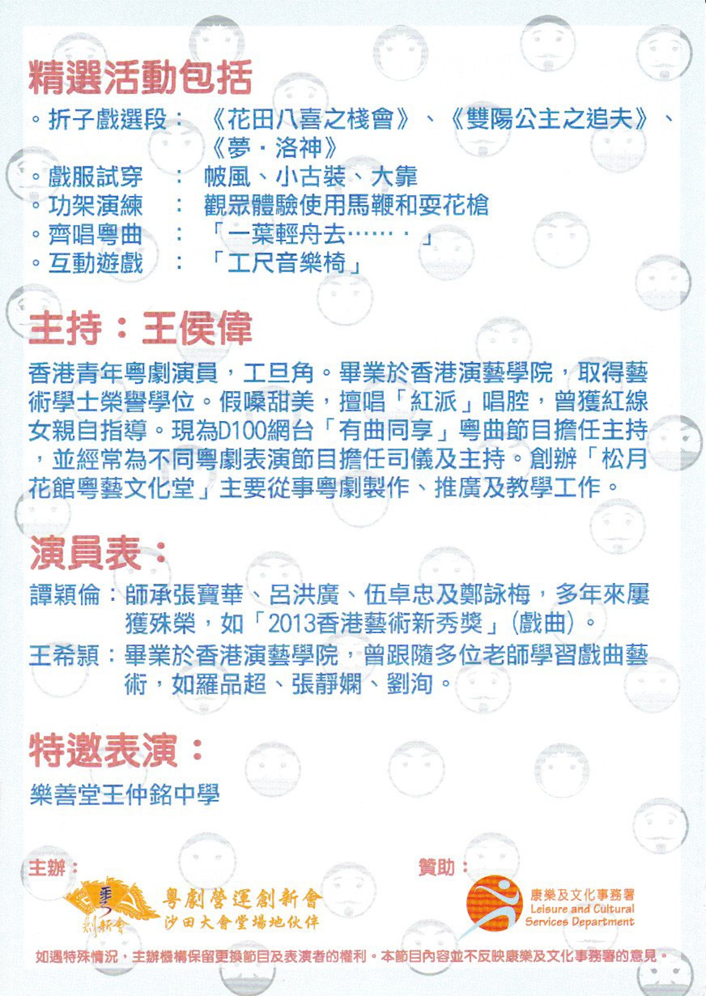 折子戲選段:《花田八喜之棧會》、《雙陽公主之追夫》、《夢‧洛神》