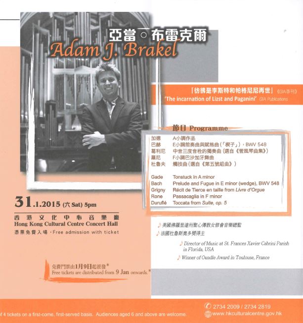 亞當.布雷克爾管風琴演奏會