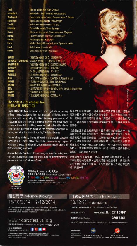 2012 格林美獎最佳古典聲樂獨唱得獎者狄杜娜朵出生於肯薩斯州,迷倒世界各地的聽眾和樂評人,更獲《紐約客》譽為「也許是這個世代最有影響力的女歌手」。狄杜娜朵不僅是優秀的表演者,也是熱情的藝術倡導者,於聲樂界躋身翹楚之位,並以羅西尼、韓德爾和莫扎特的歌劇,以及一系列題材廣泛、深獲好評的唱片享譽國際。狄杜娜朵頻頻受邀於演唱會和音樂會演唱,本樂季她將於紐約卡內基音樂廳和倫敦巴比肯中心駐場演出。最近她結束了南美獨唱巡演,並在多地的演唱會和音樂會亮相,包括柏林、維也納、米蘭、圖盧茲、墨西哥城和阿斯賓,亦在倫敦皇家阿爾伯特音樂廳以客席歌手身份參與英國廣播公司的逍遙音樂會終場。上一個樂季的歌劇演出包括:巴塞隆拿李世奧歌劇院的《灰姑娘》、芝加哥歌劇院的《狄托的仁慈》中的瑟絲杜、大都會歌劇院的《灰姑娘》中的安祖妮娜、倫敦皇家歌劇院上演的唐尼采第作品《瑪利亞‧ 絲度雅達》的主角以及於肯薩斯市公演的《卡帕萊第與蒙特鳩家族》中飾演羅密歐。本樂季的精采演出則有大都會歌劇院的《湖中女郎》中的艾妮娜、於巴塞隆拿公演的《瑪利亞‧ 絲度雅達》、英國古樂團《阿爾辛娜》的主角以及在與柏林愛樂樂團和西蒙.歷圖爵士攜手演出的《浮士德的沉淪》中飾演瑪格麗特。狄杜娜朵是埃拉托 / 華納經典的專屬藝術家,最近推出了新專輯《拿玻里之星》,帶來一場華麗的美聲歌劇盛宴,包括由貝里尼、羅西尼和唐尼采第較鮮為人知的作品。她的格林美得獎專輯《女聲?男聲!狄杜娜朵詠嘆調集》收錄男性及女性角色的詠嘆調,藉以展示女中音精采紛呈的世界。之後推出的《戲劇女王》 無論是專輯還是國際巡迴演出均廣受歡迎。去年,收錄了她首十年錄音的作品精選集《再現風華!》面世。狄杜娜朵獲得的其他獎項包括留聲機年度藝術家獎及年度音樂會獎,兩度獲回聲大獎年度女歌唱家殊榮,並獲列入留聲機古典音樂名人堂。