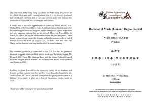 蔡君賢音樂學士(榮譽)學位畢業演奏會(小提琴)