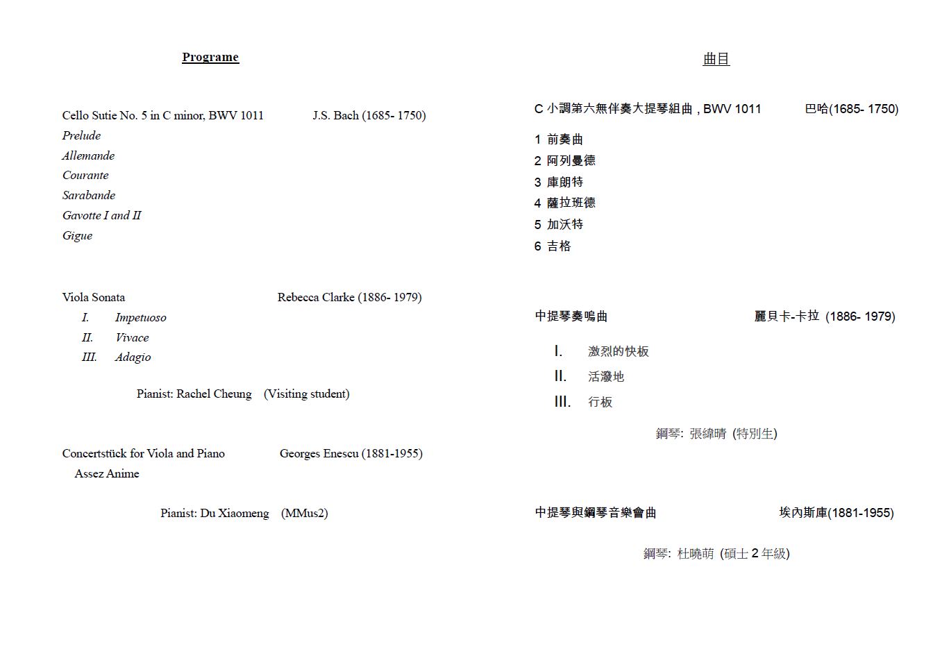 蔡書麟音樂碩士畢業音樂會(中提琴)