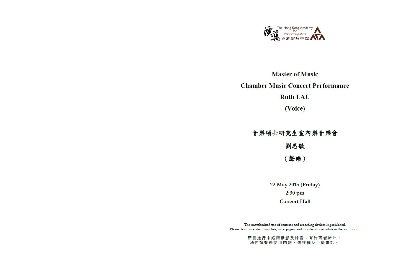 音樂碩士研究生室內樂音樂會劉思敏(聲樂)