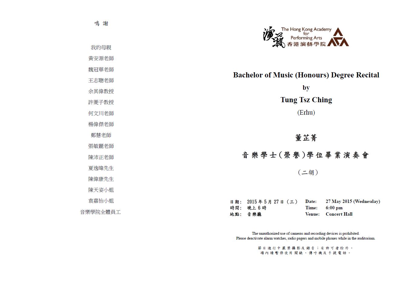 董芷菁音樂學士(榮譽)學位畢業演奏會(二胡)
