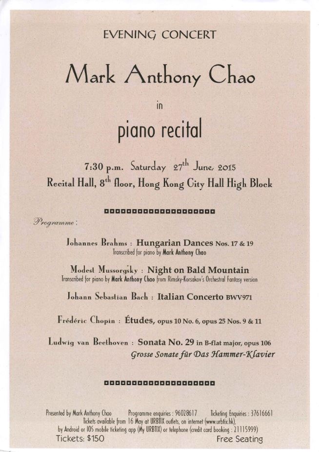 Evening Concert Mark Anthony Chao in Piano Recital