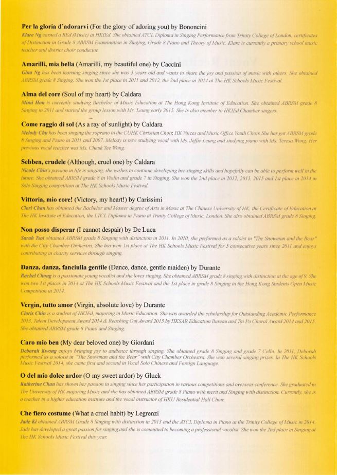 24 Italian Songs & Arias: Vocal Recital by Young Vocalists, Lecture by Jeffie LeungYoung Vocalists