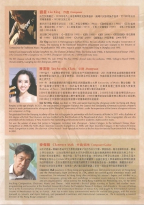 延續過往七年的潮流足跡,樂團將帶您繼續瀏覽中樂創作的最新動向。東西方兩種別具特色的彈撥樂器將同台較量。繼不世鉅作《雲南回憶》後,音樂鬼才劉星再以驚世駭俗的音樂才華,把他於2004年完成,本已塵封的極高難度作品《第二中阮協奏曲》重新移植為中樂團版,並由其高足,新加坡青年中阮演奏家陳素敏擔綱世界首演重任;香港演藝學院作曲系主任麥偉鑄亦會展示他在結他上的高深造詣,親自演奏他自己的全新力作《青天心碑》。這兩首樂曲為中阮與吉他的創作訂立新標準。國際著名男低音龔冬健更會以深厚無匹的功力獻唱唐建平的大型交響音樂史詩《成吉思汗》,演繹一代天驕的壯志豪情。劉星及麥偉鑄更將親自剖白他們的創作心路。中西撥弦與聲樂的碰撞,點與線的相融交匯,盡在香港中樂團「樂旅中國VIII」!