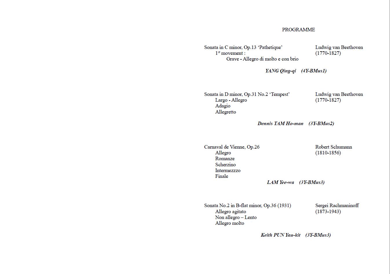 Piano Department Concert (5/2)