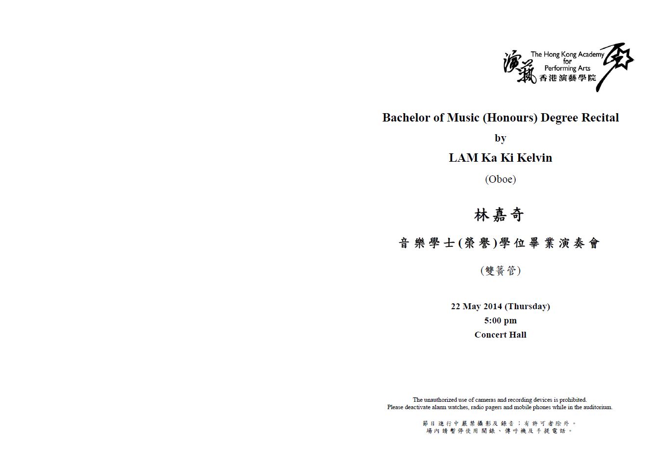 林嘉奇音樂學士(榮譽)學位畢業演奏會(雙簧管)