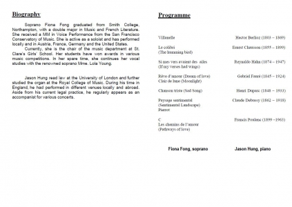 Mélodies from the French Garden A Voice Recital by Fiona Fong and Jason Hung