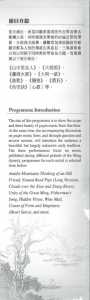 是次演出,希望向觀眾展現明代古琴音樂各範疇之美,同時透過音樂會的討論及問答環節,介紹曲式結構,讓觀眾加深認識這些動聽但鮮為人知的傳統古典曲目。三場演奏會分別以明朝不同時期的琴曲為主題,每場選演以下部分曲目: