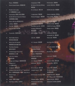 演奏者張峻銘, 黃鍵熹, 張澄心, 周彣彤, 李彥寯, 陳靖嵐, 陳皓揚, 陳爾雅, 羅海澄, 羅海鈴, 韋汶軒, 周詩澄, 謝曜翔, 李浩賢, 陳允希, 鮑可悅, 游鎧源, 張頌恩老師, 陳諾謙, 林詩朗老師, 郭羨兒, 莊朗榕, 黃穎芝老師, 林卓穎, 吳宇華, 林嘉成, 楊欣潔, 陳易希, 宋柏翹, 陳宇謙, 施灝媛, 方炘彤, 關雪鈴, 林詩朗老師