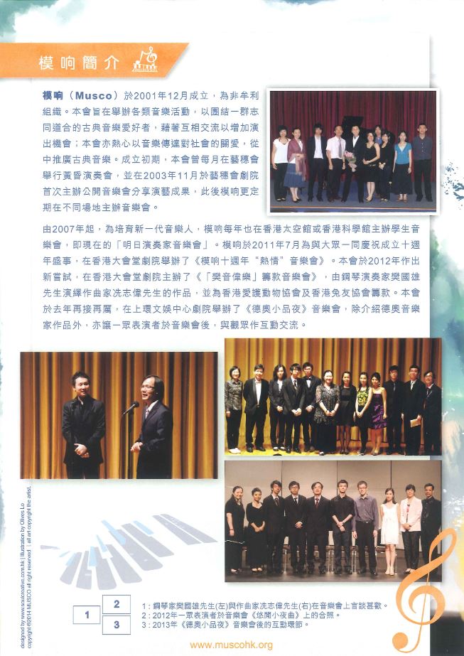 (此作品於2014年由MUSCO委約, 費用由香港作曲家及作詞家協會轄下的「CASH音樂基金」贊助。)