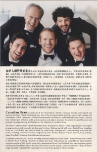 加拿大銅管樂五重奏由五位才華超卓的樂手組成,包括高瞻遠囑的創立人、大號名家和商業專才戴倫巴,以及四位新一代頂級銅管樂之星:小號手哈德遜與哥列提,長號手利亞馬哥普路斯,及圓號手史格利。他們不單擁有高超得令人難以置信的技術和樂藝,更創意十足,又有幽默感,且熱愛表演,全都是加拿大銅管樂五重奏的標誌。