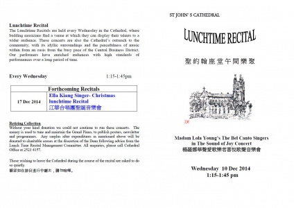 The Bel Canto Music Society was founded in 1967 by Madam Lola Young, a renowned soprano returned from Italy. This Society is noted for its outstanding achievement both in vocal and instrumental concerts. The aim for the society is to promote and cultivate musical interest for the benefit of local promising singers. Ample opportunities are given for public performances. Master classes and concerts are also organised for members of this society and other interested parties. Famous international artists from Italy, Japan, France, China and Austria had been invited to hold such classes and perform in concerts with much satisfaction. This non-profit making organisation is made up of music lovers from the medical, architectural, educational, legal, commercial and religious sectors. At the concerts presented by the Urban and Regional Councils, the Leisure and Cultural Services Department, churches, commercial and charitable societies, the “Bel Canto “ singers always enjoyed rapturous acclaim.