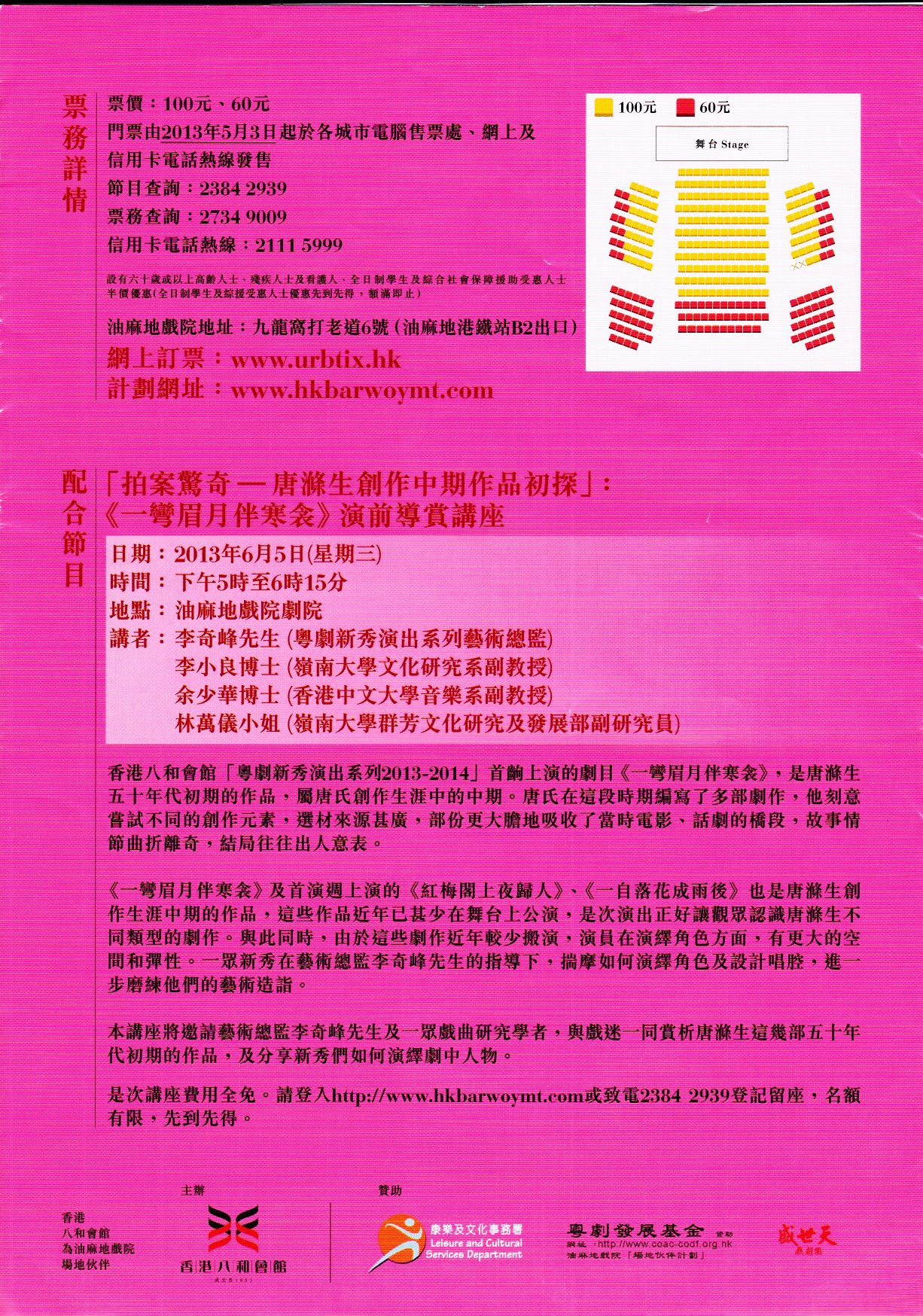 油麻地戲院場地伙伴計劃-2013/14粵劇新秀演出系列演期(一):《再世紅梅記》
