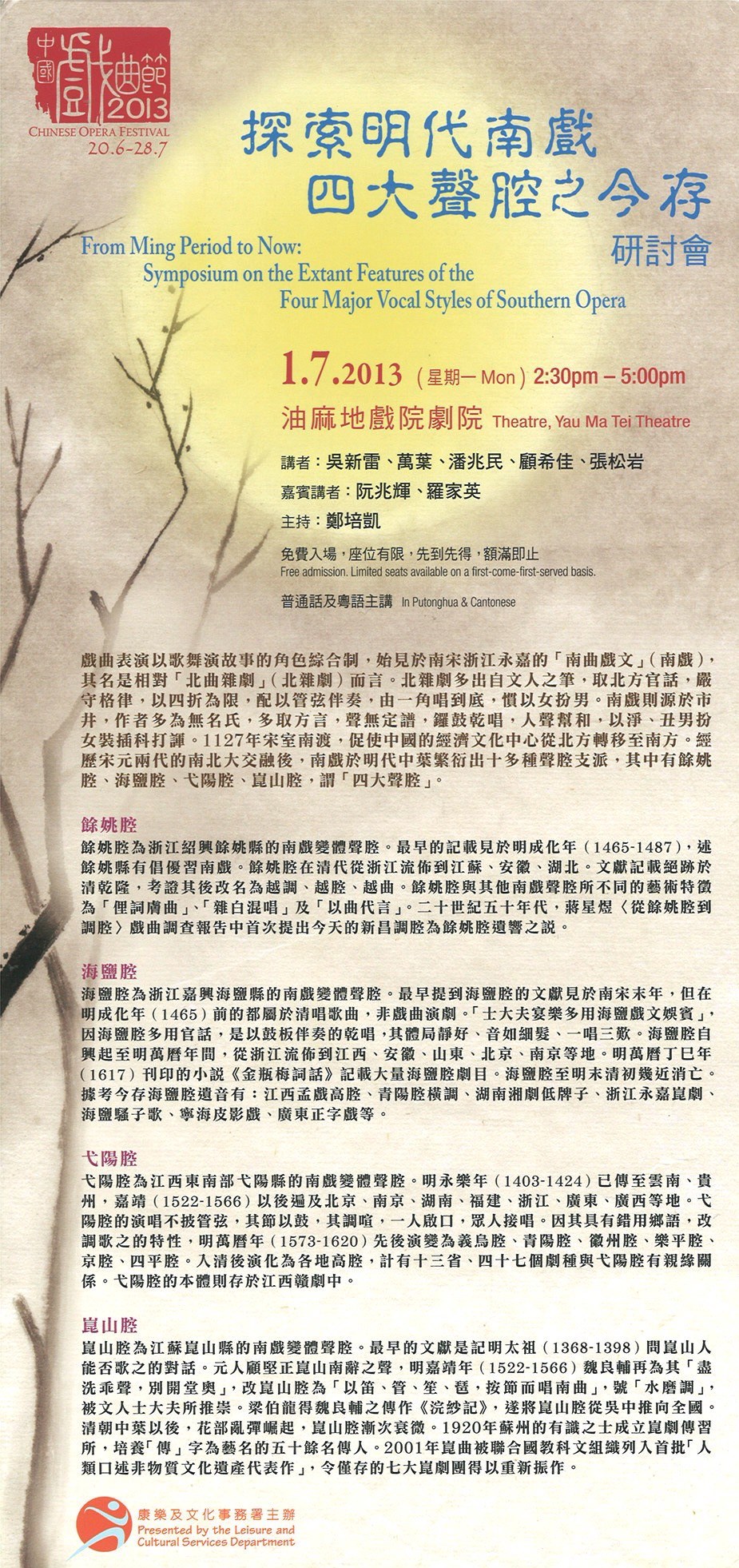 中國戲曲節2013︰「探索明代南戲四大聲腔之今存」研討會