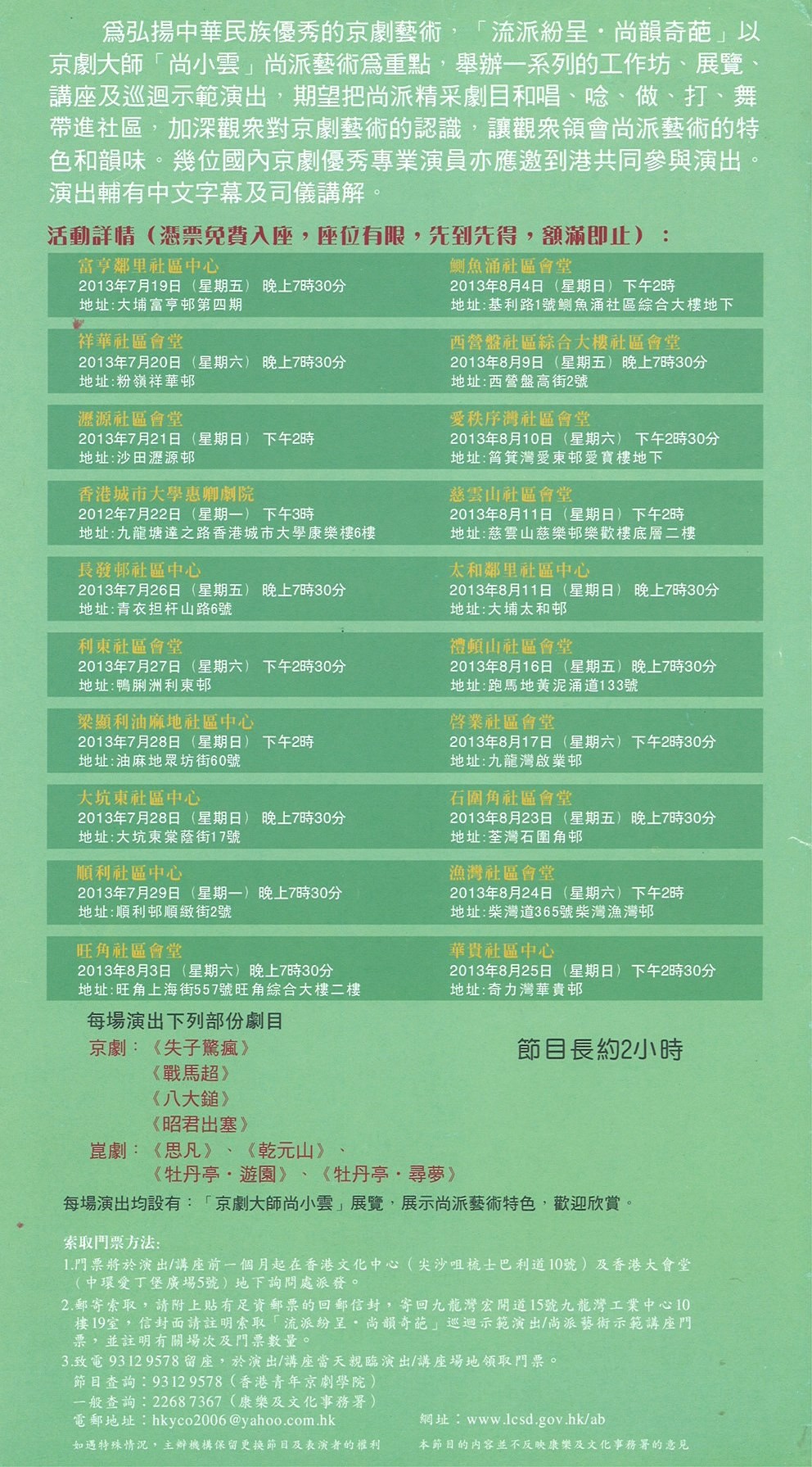 2013社區文化大使-香港青年京劇學院『流派紛呈‧尚韻奇葩』巡迴示範演出