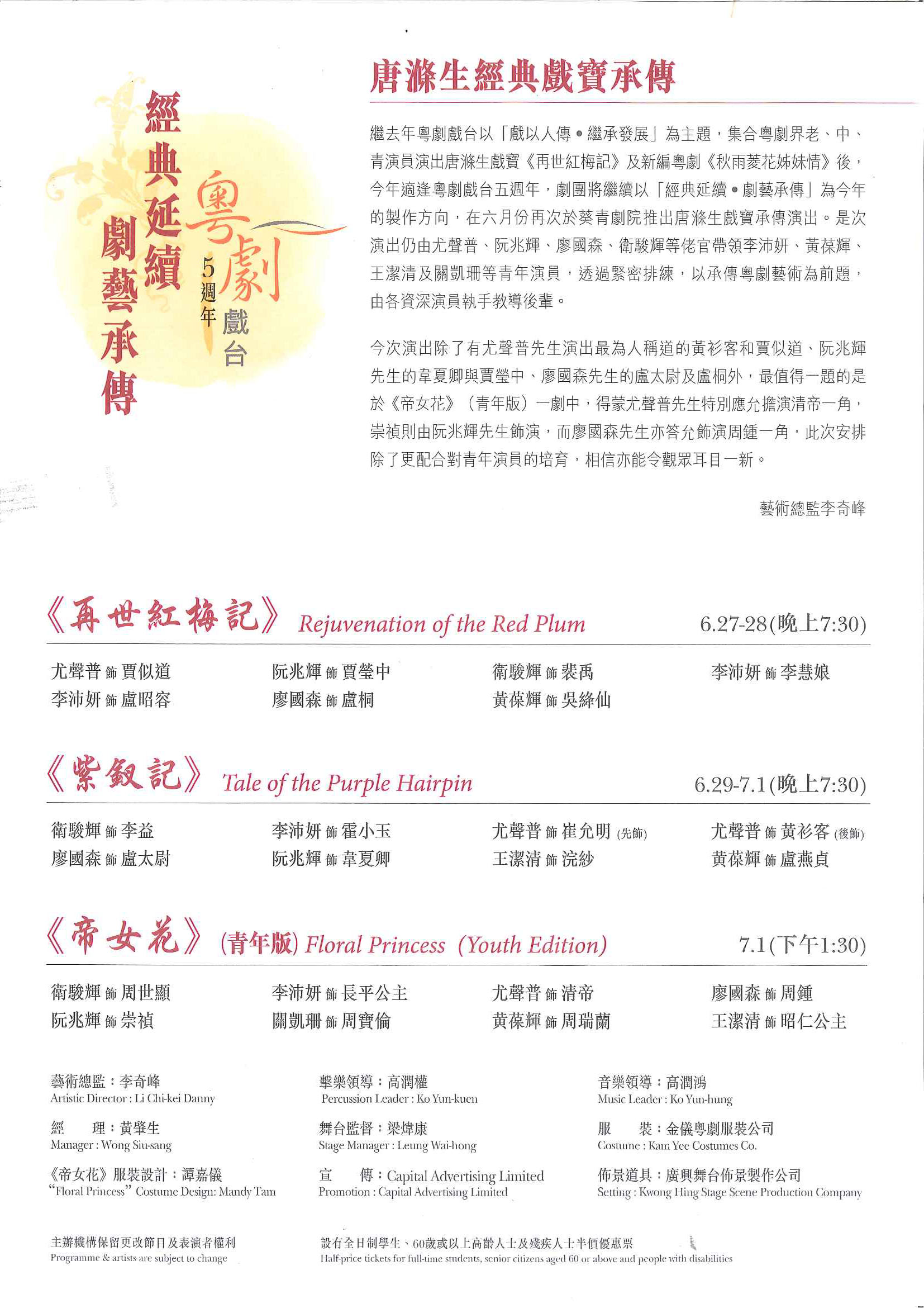 唐滌生經典戲寶承傳《紫釵記》