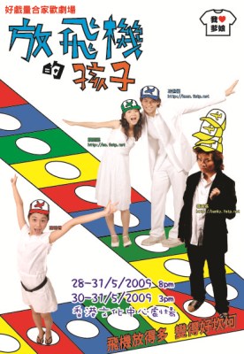 <放飛機的孩子>故事講乜:他、她、他他、她她、他她、她他、他她他分別因不同原因趕著乘飛機回家,奈何架飛機真係被放飛機,DELAY又 DELAY,眾人被迫安排在機場洒店休息等飛機,大家等了又等,一位飛行服務員拿出飛行棋,大家玩了又玩,發現各人原來已不懂玩連三歲小孩也懂玩的飛行棋。三歲定八十,原來在三歲開始,他們學懂的竟是放飛機。為何書本沒有教的放飛機?他們三歲已學懂?只因放飛機即是失約,即是言而無信,即是大話......他們發現第一次被他們放飛機的人都是自己的家人......家家除了有本難唸的經外,原來家家也有架常放的飛機......