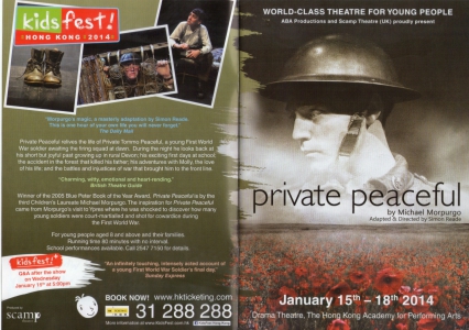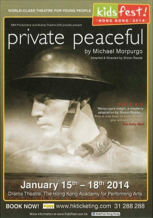Private Peaceful relives the life of Private Tommo Peaceful, a young First World War soldier awaiting the firing squad at dawn. During the night he looks back at his short but joyful past growing up in rural Devon; his exciting first days at school; the accident in the forest that killed his father; his adventures with Molly, the love of his life; and the battles and injustices of war that brought him to the front line.