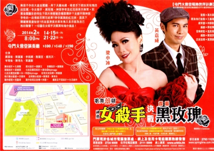 賀歲經典歌舞「囍」劇《神勇女殺手決戰霹靂黑玫瑰》玩「轉」經典 峰迴路「轉」 無惡不作的大盜金閻羅,佈下天羅地網,唆使手下假扮黑玫瑰四出犯案,令女殺手、黑玫瑰、神探李奇及紅花俠束手無策。究竟金閻羅目的何在?四大俠客能否儆惡懲奸?女殺手與神探李奇的一段情能否開花結果?身份莫測的紅花俠,面具下隱藏著甚麼秘密?而劫富濟貧的黑玫瑰又能否為自己挽回聲譽?一切盡在女殺手決戰黑玫瑰中揭盅!