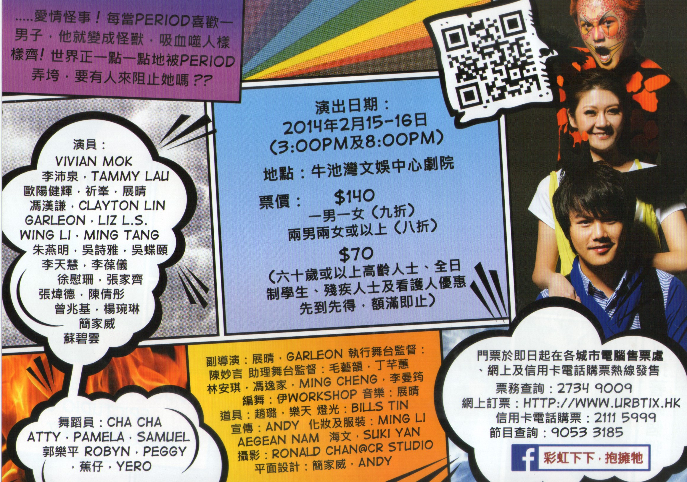 繼《老豆,我已經三十歲》後,Epictudio最新原創劇作《彩虹下下,抱擁牠》將於2月15至16日在牛池灣文娛中心劇院公演四場。故事中主角Period每遇上心儀對象,就會穿越光怪陸離的「異度空間」,身邊人也被逼和珍禽異獸惡戰一場!他們最終能否脫險?